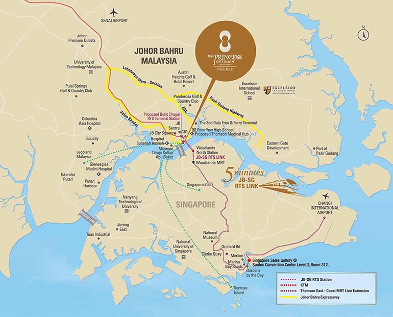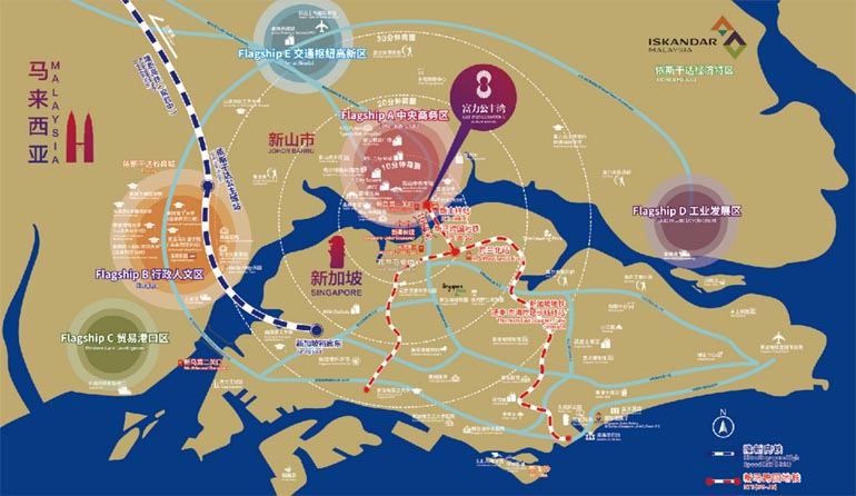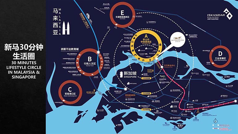 从富力公主湾出发,30分钟直达新山士乃机场及新加坡樟宜机场,4小时直航到广州、深圳,3-7小时即可通达全亚洲。 未来泛亚铁路开通后,在昆明乘坐火车,7小时即可到达马来西亚,轻松开启无时差国际生活圈。